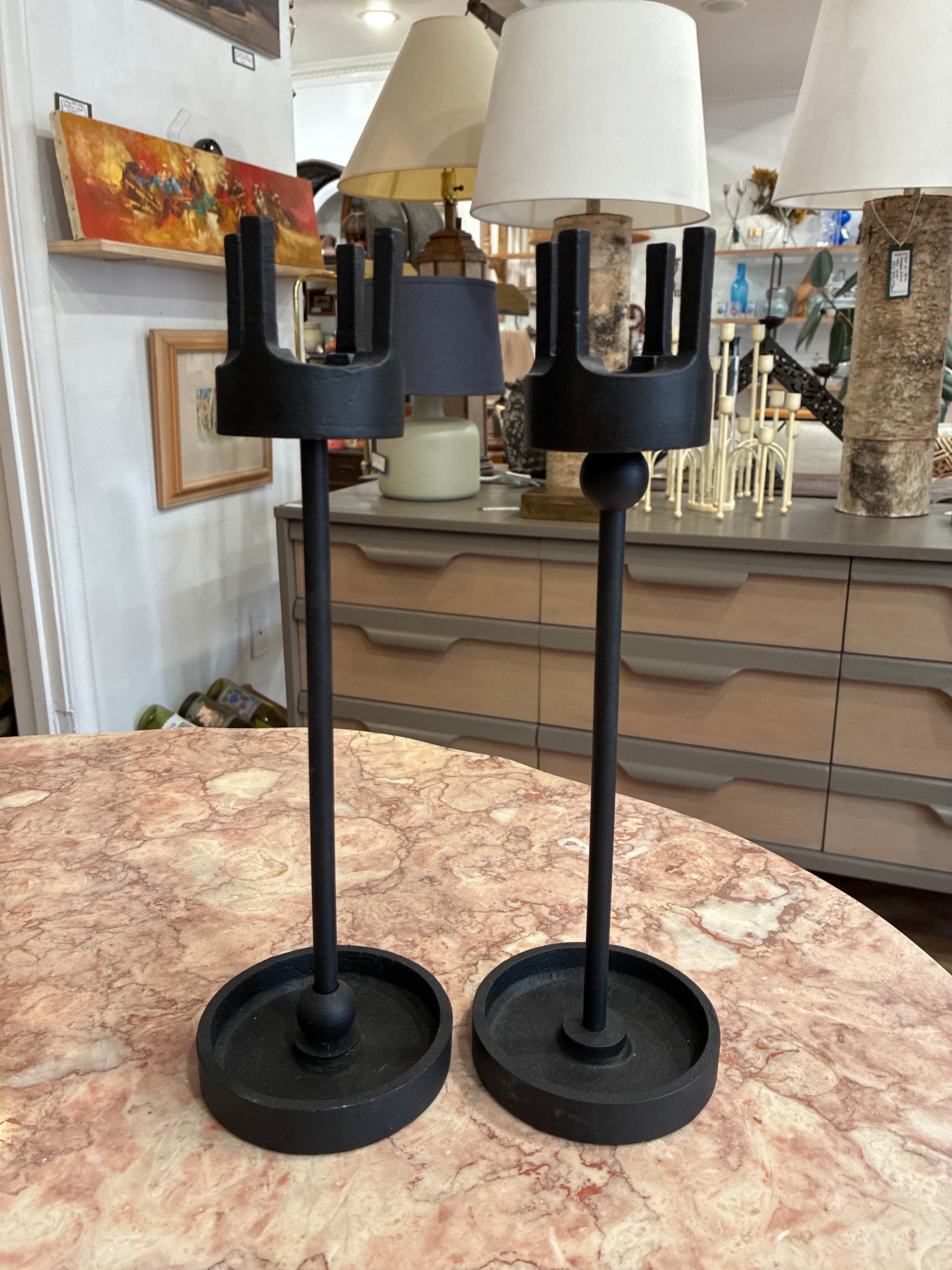 Pair of Vintage Iron Brutalist Van Keppel Green Inspired Candle Holders