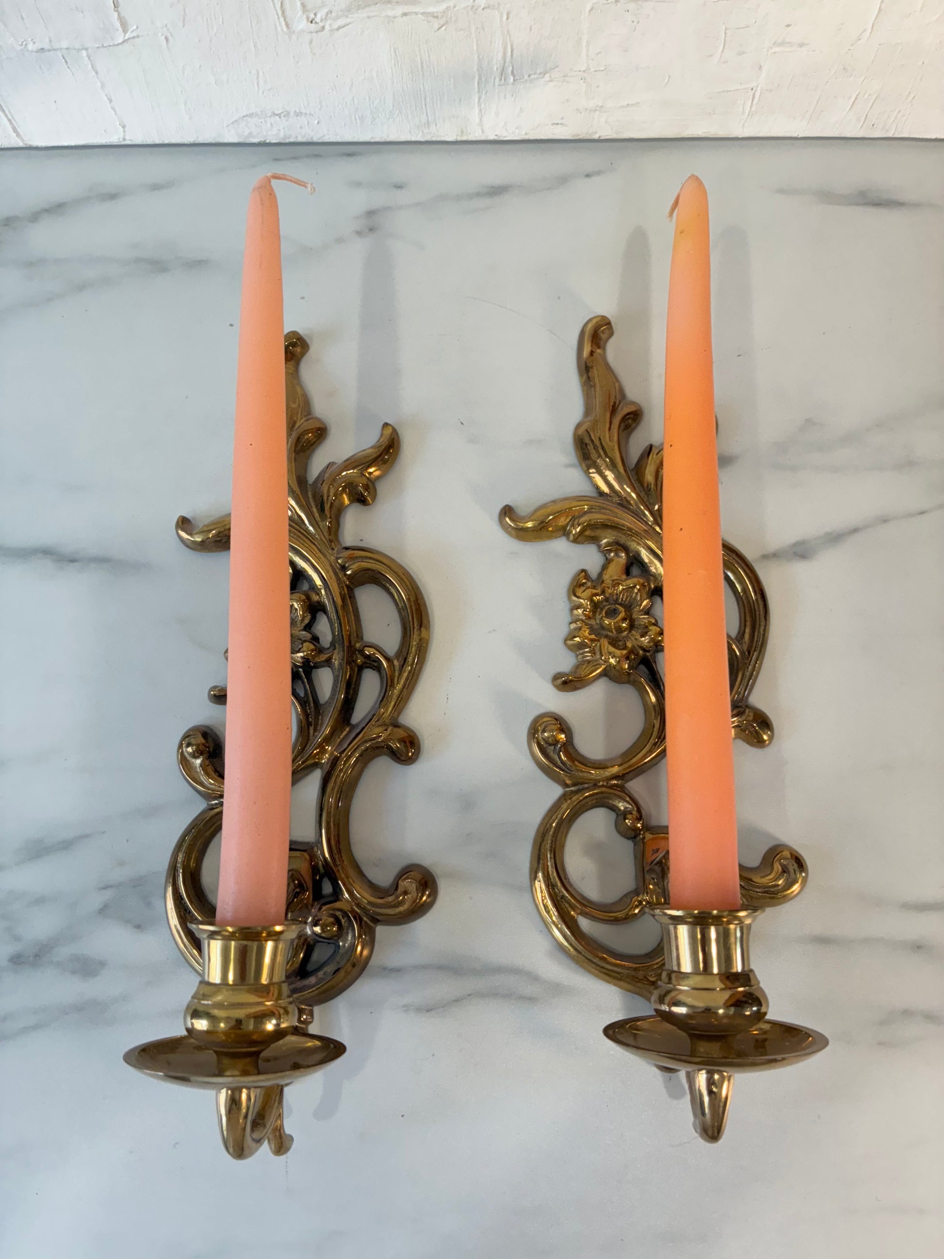 These sconces typically fall under Hollywood Regency or Mid-Century Modern style, often featuring ornate, Baroque-inspired designs.