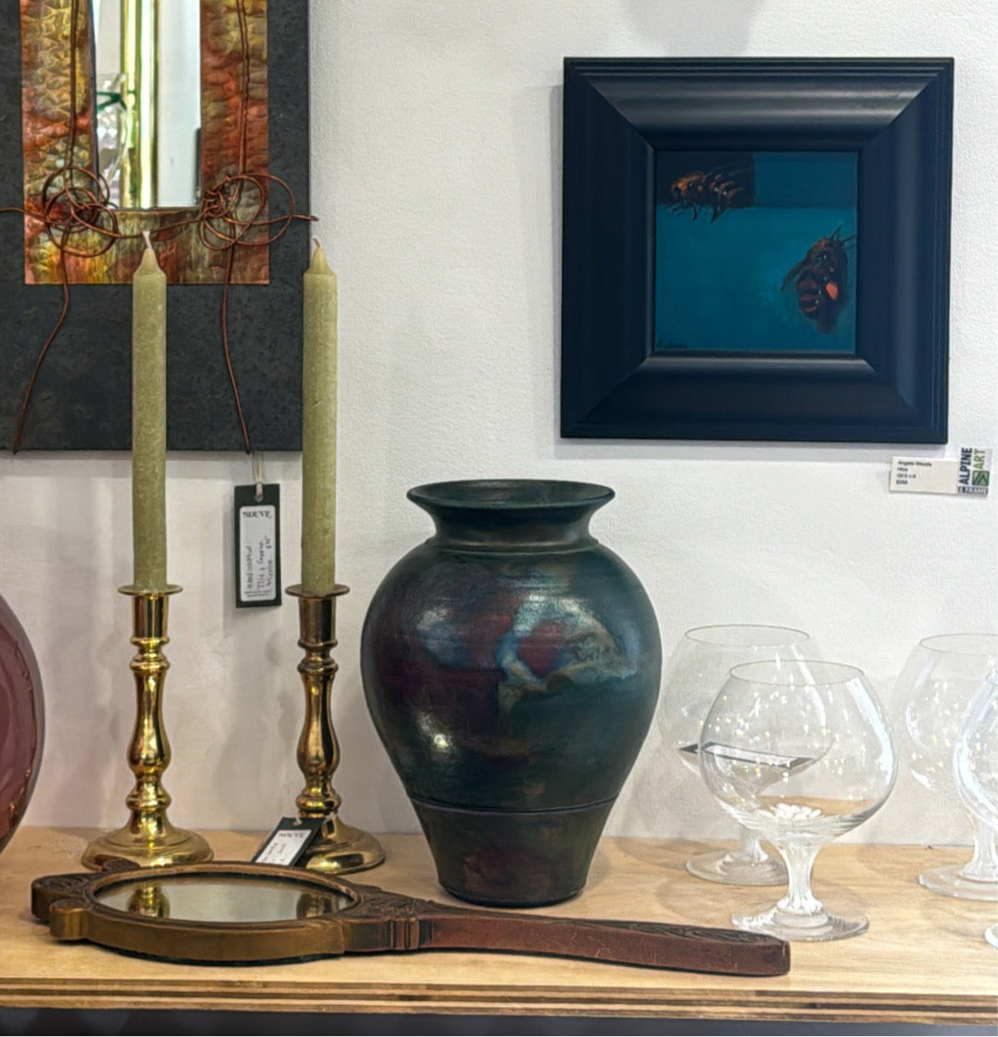 Wheel thrown Raku fired vase by Tristan.