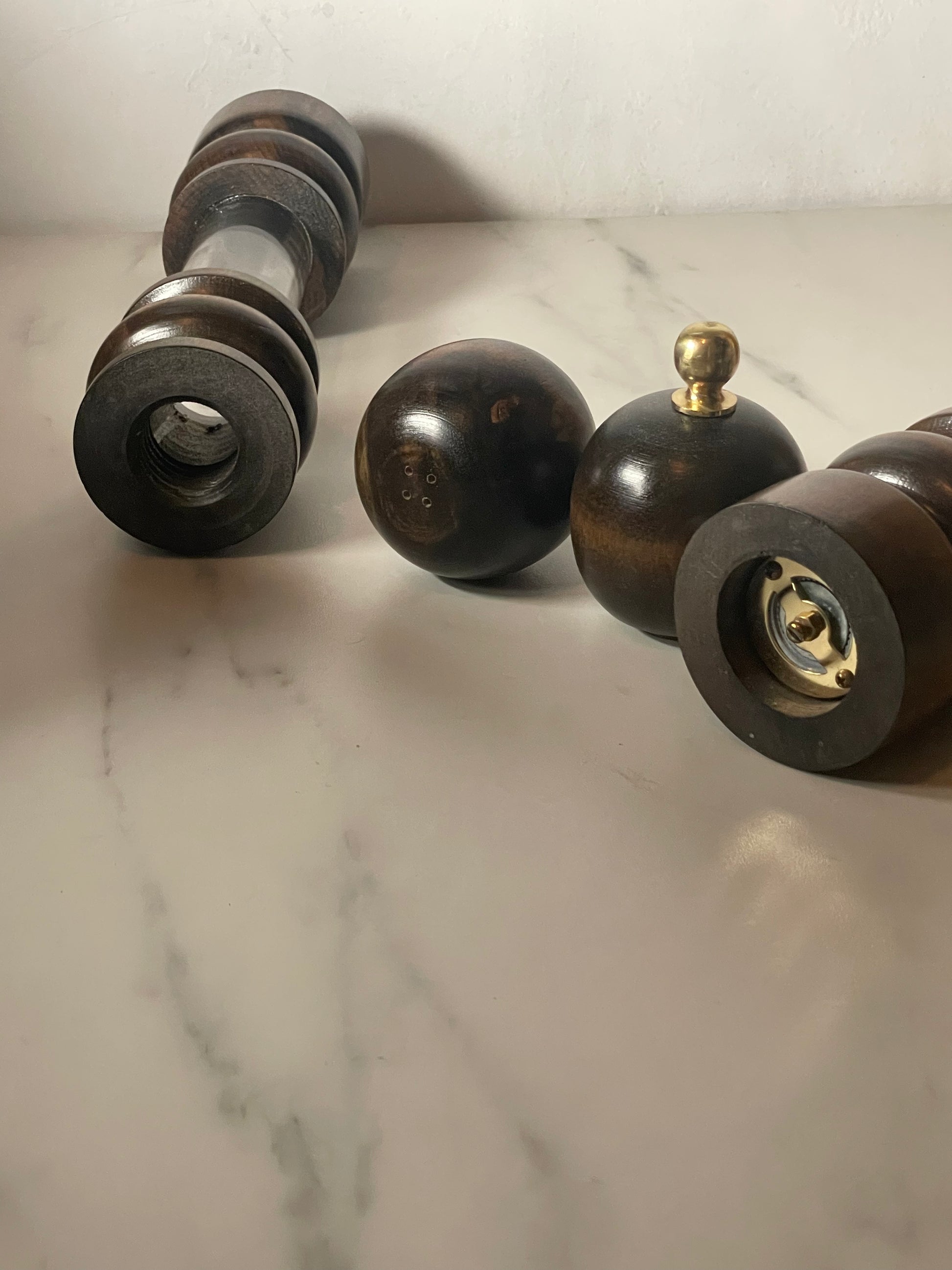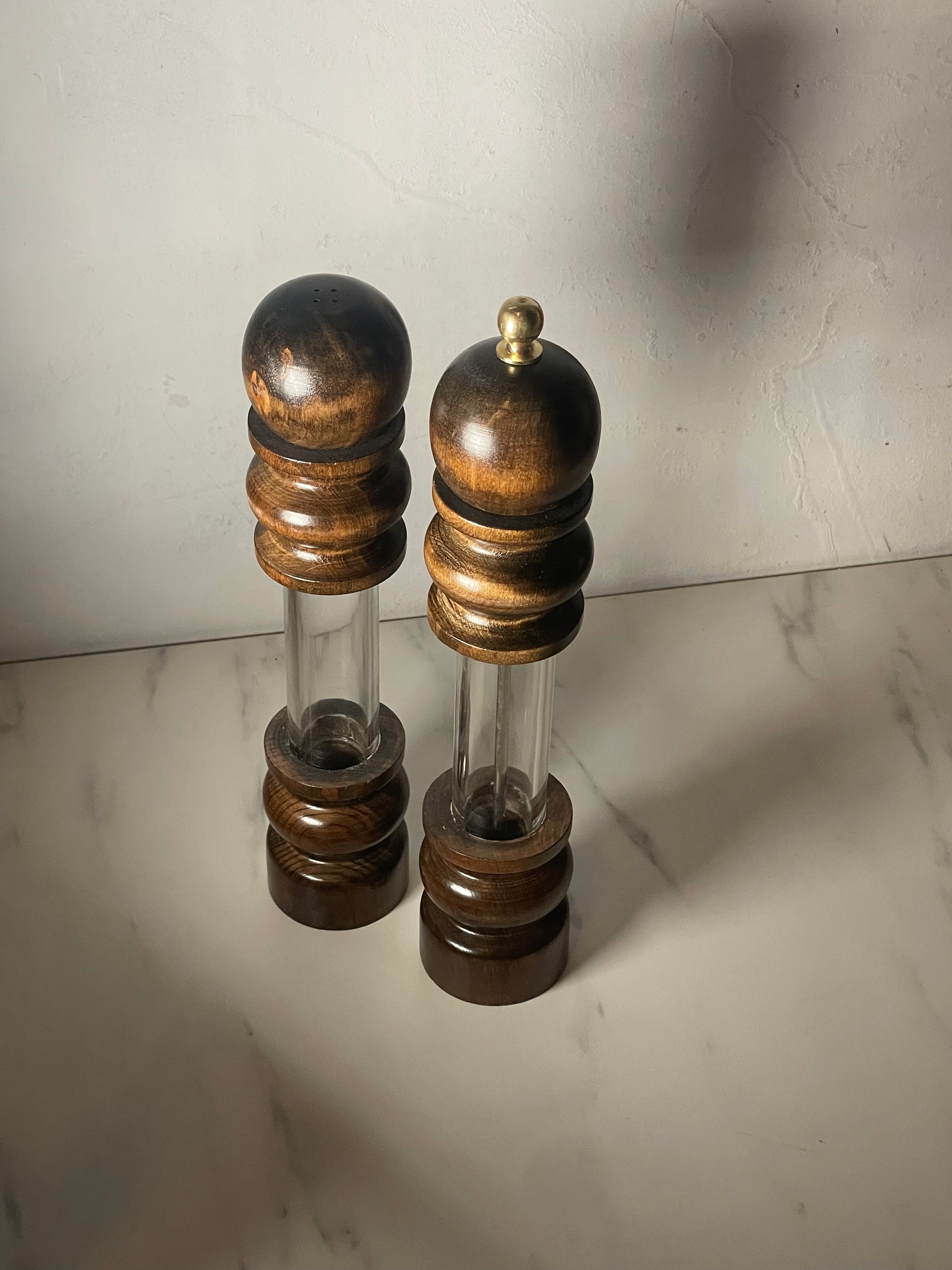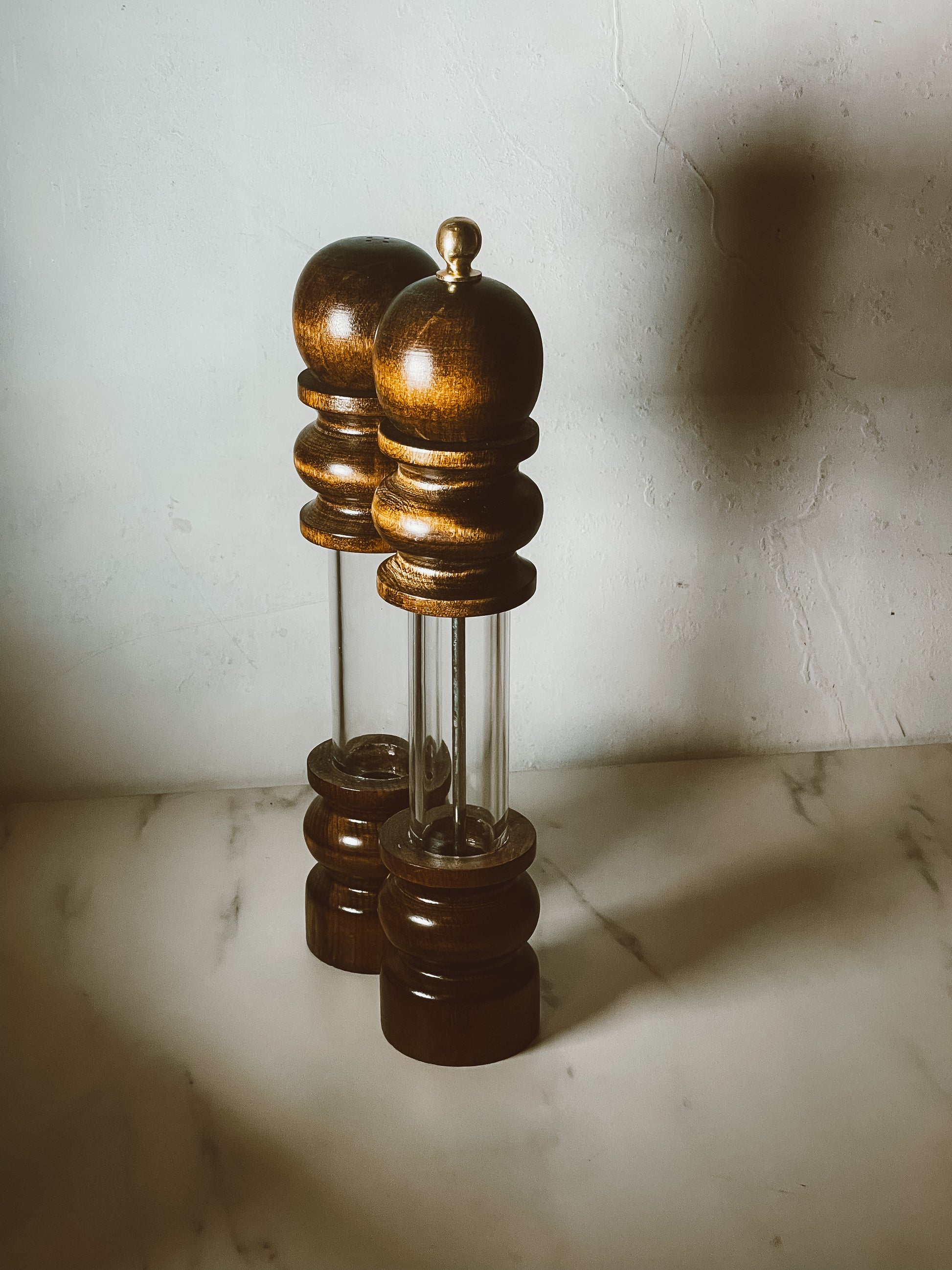 Wood and Brass Salt Shaker and Pepper Grinder - Made in Japan