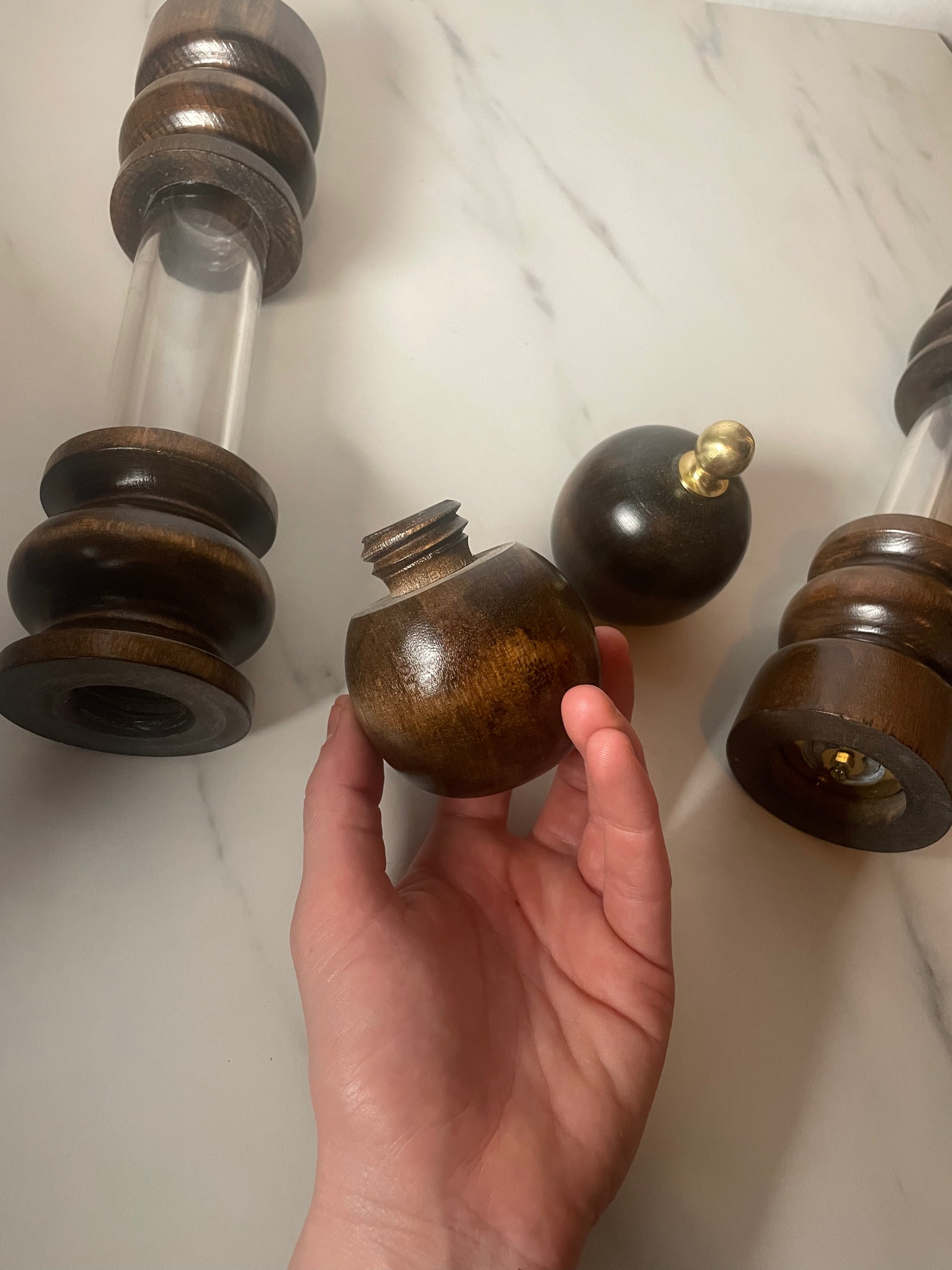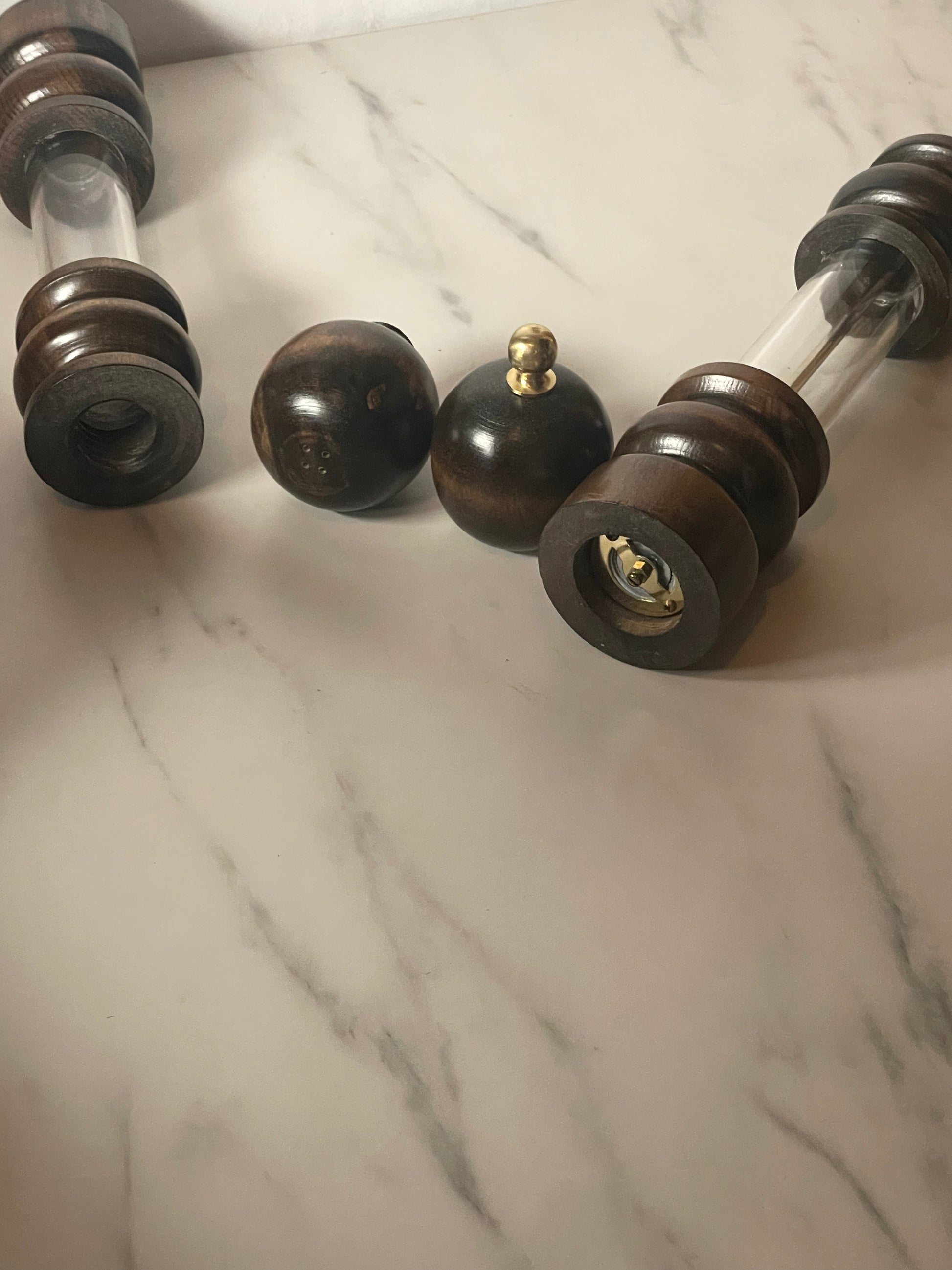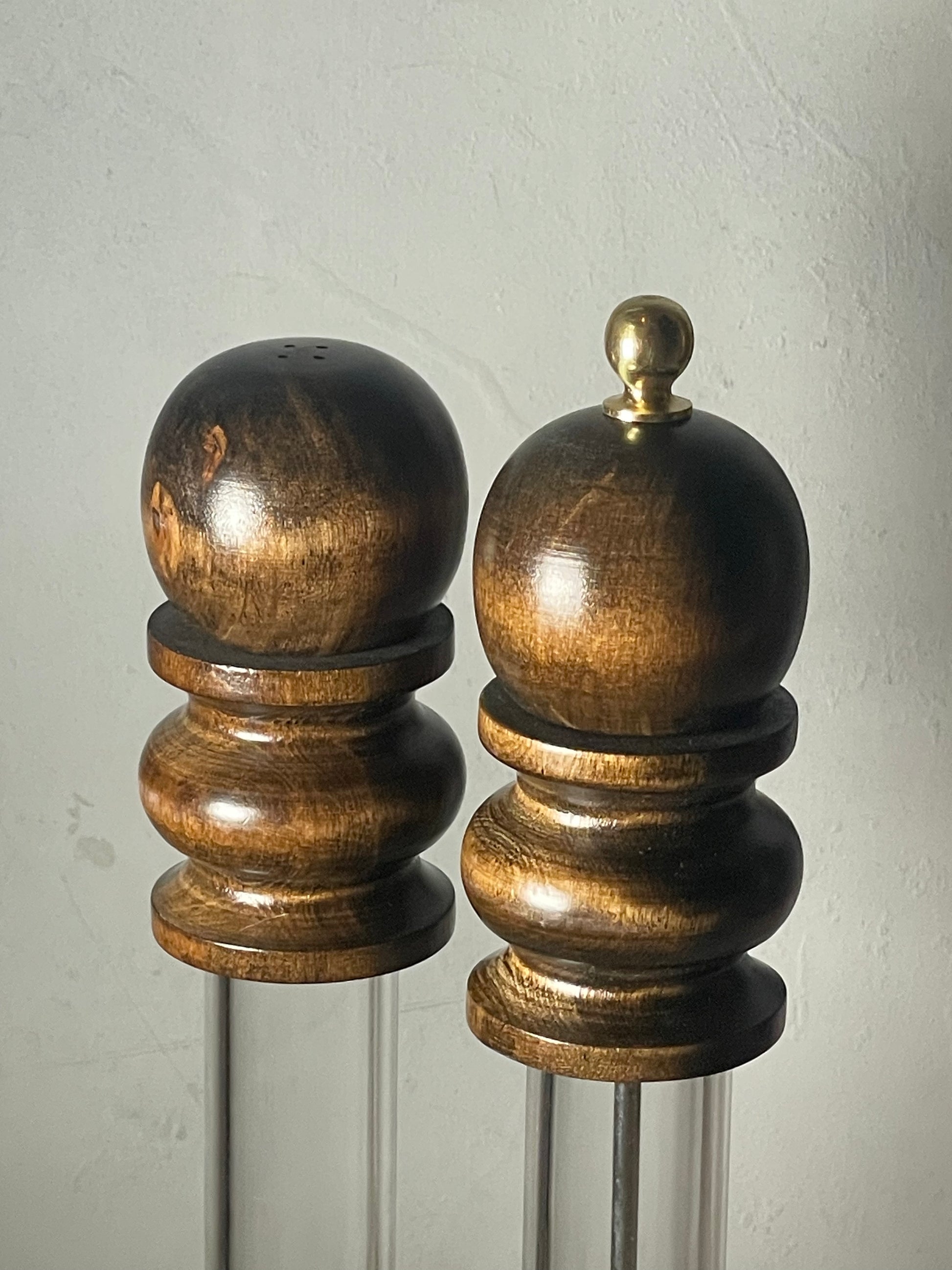 Wood and Brass Salt Shaker and Pepper Grinder - Made in Japan